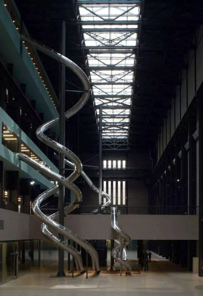 En 2006, le Tate Modern a littéralement transformé son hall principal en terrain de jeu géant. L’artiste Carsten Höller y a installé Test Site : d’immenses toboggans en acier descendant en spirale depuis les étages supérieurs du musée jusqu’au rez-de-chaussée. Mais derrière le fun, il y avait une vraie réflexion : comment le jeu peut-il redéfinir notre rapport à l’art et à l’espace ? Les visiteurs pouvaient glisser eux-mêmes, ressentir la vitesse, la peur et le rire mêlés — une expérience physique autant qu’esthétique. C’était l’art qu’on ne regarde plus, mais qu’on vit.